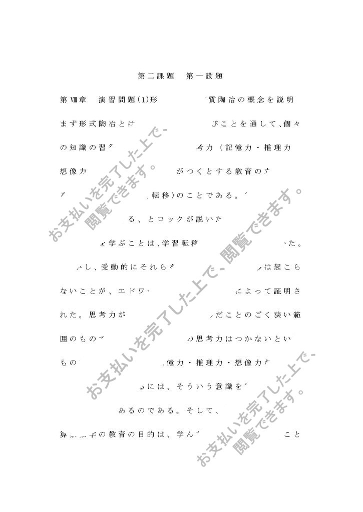 第Ⅷ章 演習問題(1)形式陶冶と実質陶冶の概念を説明