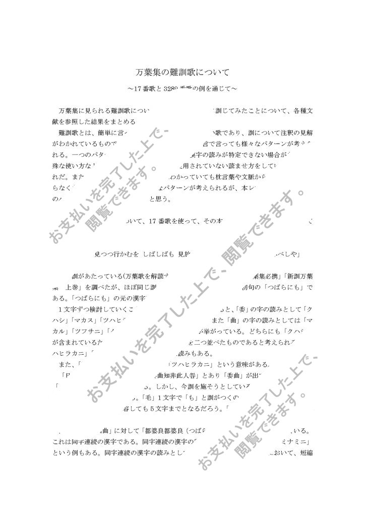 万葉集に見られる難訓歌について、その定義や実際に訓じてみたことについて、各種文献を参照した結果をまとめる。