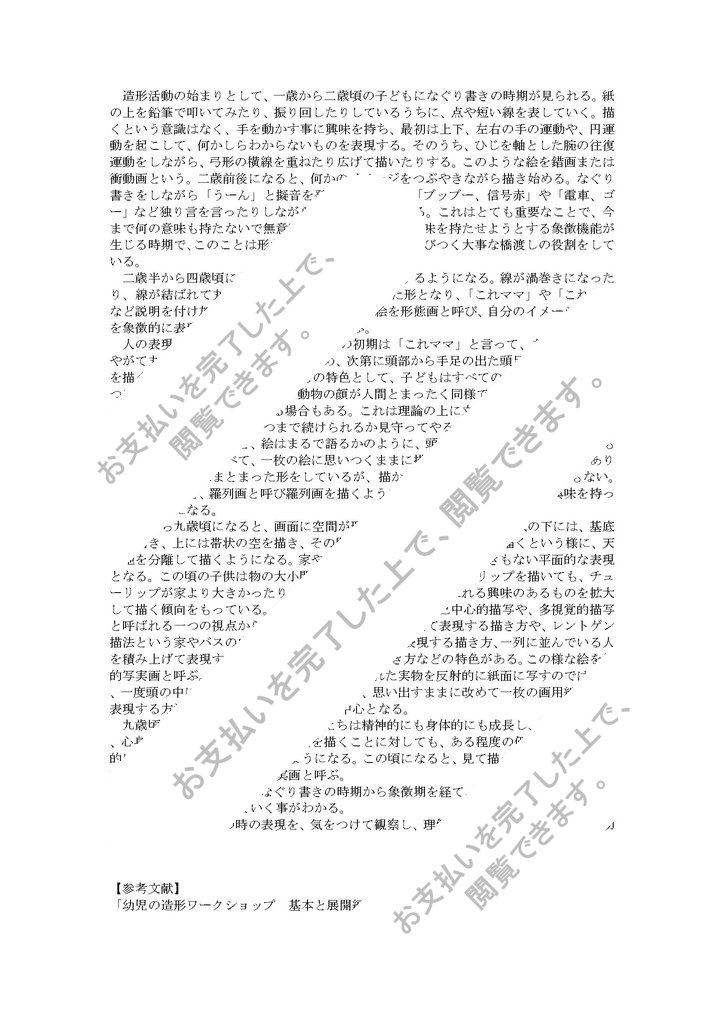 二歳半から四歳頃になると、形が表れ意味づけをするようになる。線が渦巻きになったり、線が結ばれて丸を描いたりして一つの独立した形となり、「これママ」や「これ車」など説明を付け加えるようになる。...