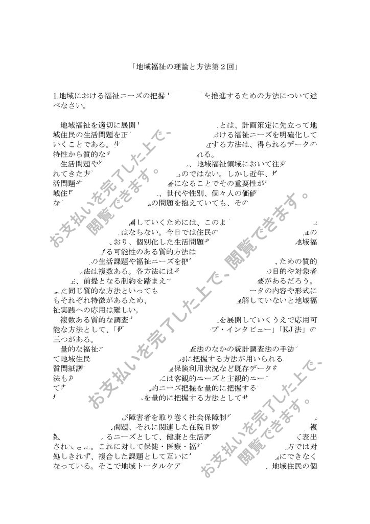 1.地域における福祉ニーズの把握と地域福祉を推進するための方法について述べなさい。