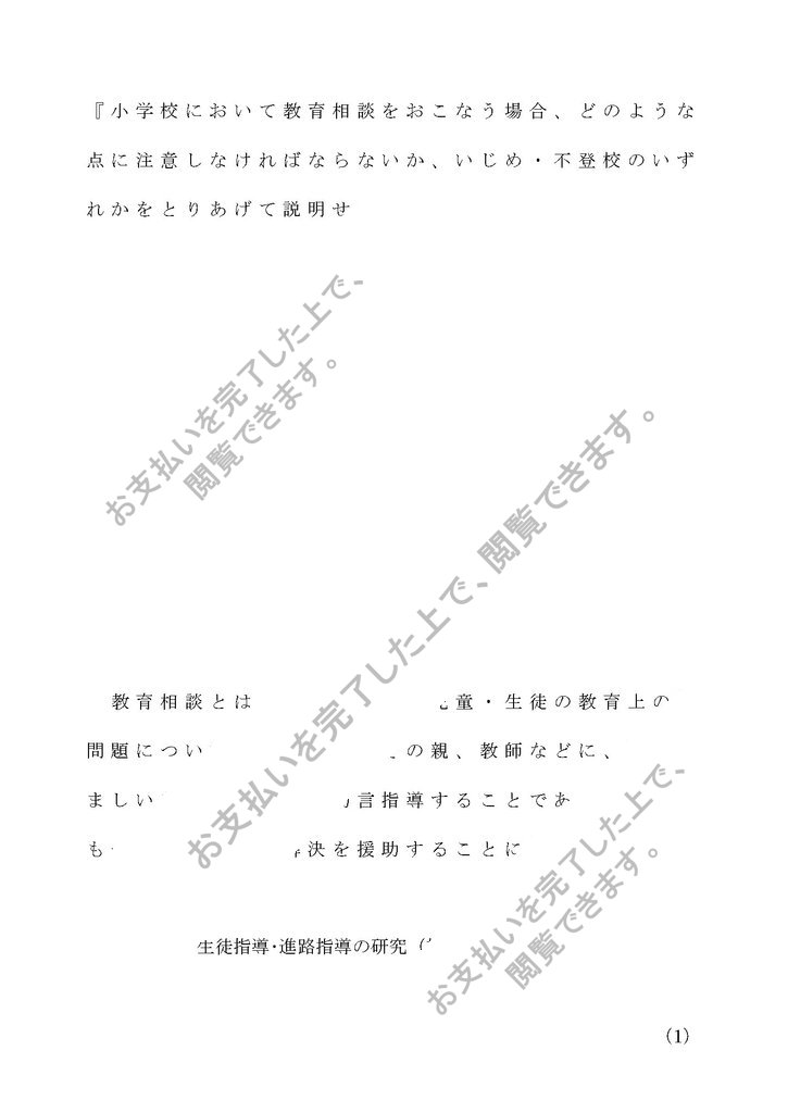 『小学校において教育相談をおこなう場合、どのような点に注意しなければならないか、いじめ・不登校のいずれかをとりあげて説明せよ。』