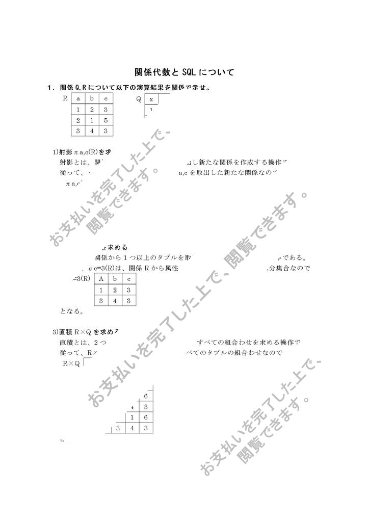 関係Q,Rについて以下の演算結果を関係で示せ。
