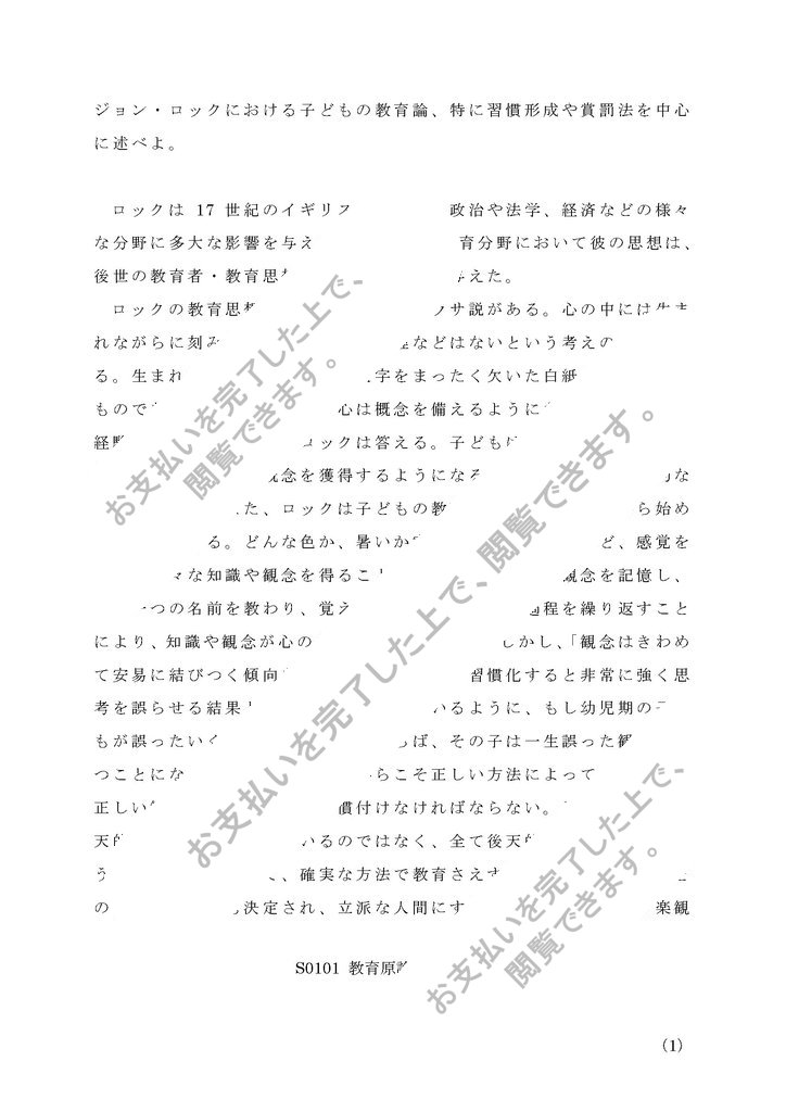 第2設題 「ジョン・ロックにおける子どもの教育論、特に習慣形成や賞罰法を中心に述べよ。」