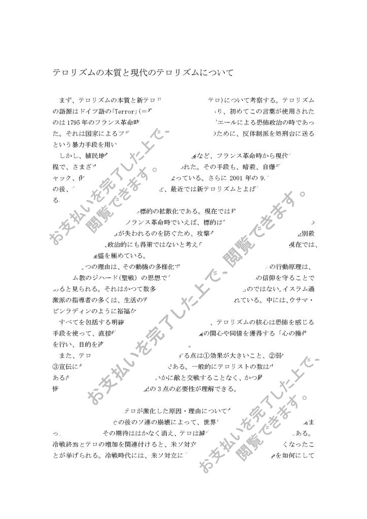 テロリズムの本質と現代のテロリズムについて