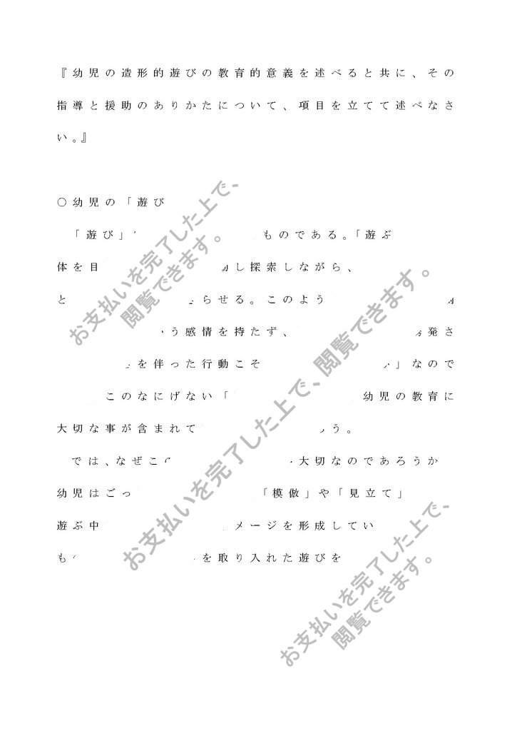 『幼児の造形的遊びの教育的意義を述べると共に、その指導と援助のありかたについて、項目を立てて述べなさい。』