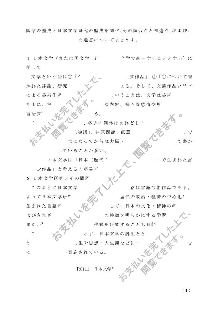 佛教大学通信学部「R0111 日本文学概論 第一設題[国学の歴史と日本文学研究の歴史を調べ、その類似点と相違点および問題点をあげなさい」のB判定 レポートです。 提出後、手は加えていませんので、誤字などに注意してください。 2011年度課題ですので、内容が変わっているかもしれません。