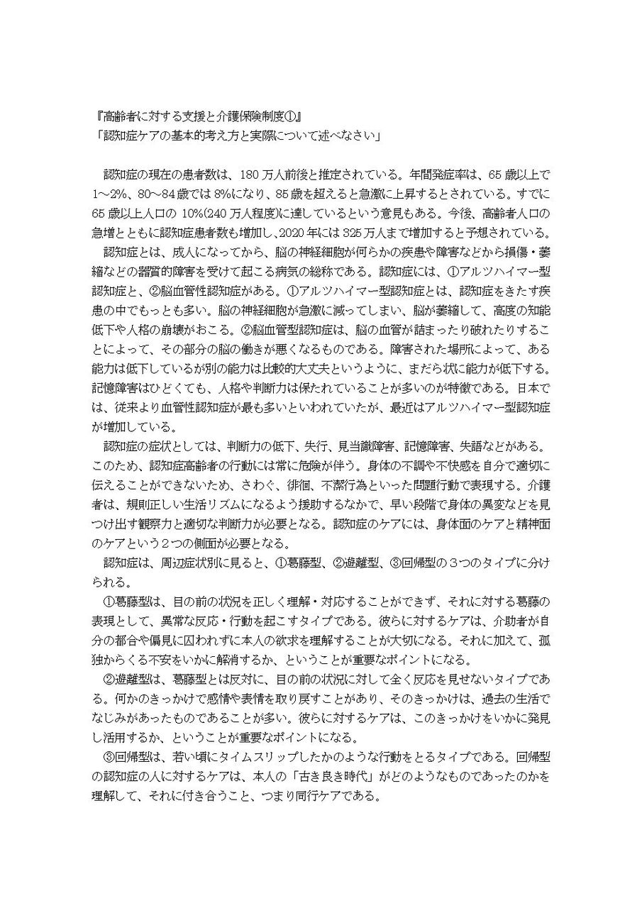 「認知症ケアの基本的考え方と実際について述べなさい」