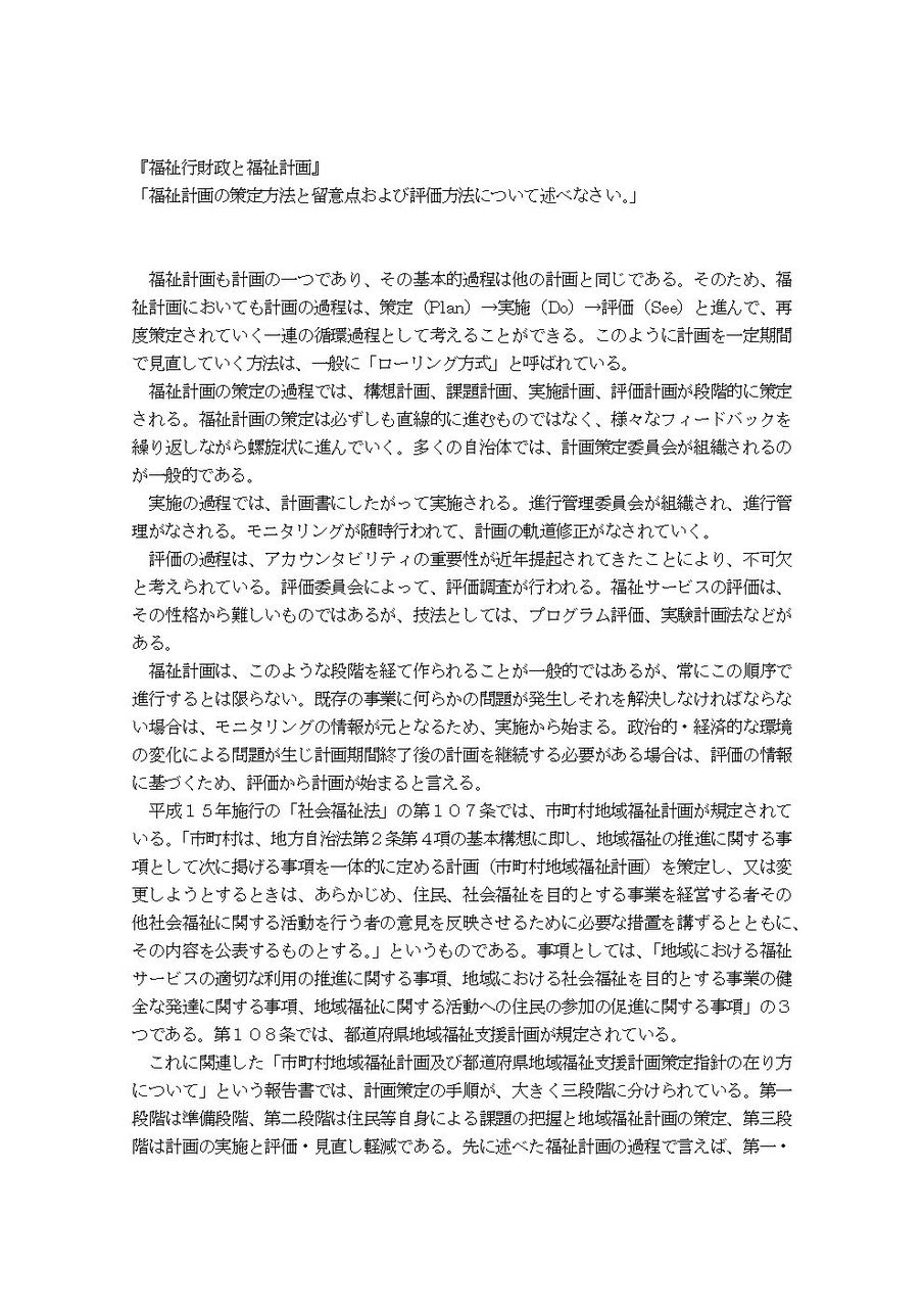 「福祉計画の策定方法と留意点および評価方法について述べなさい。」