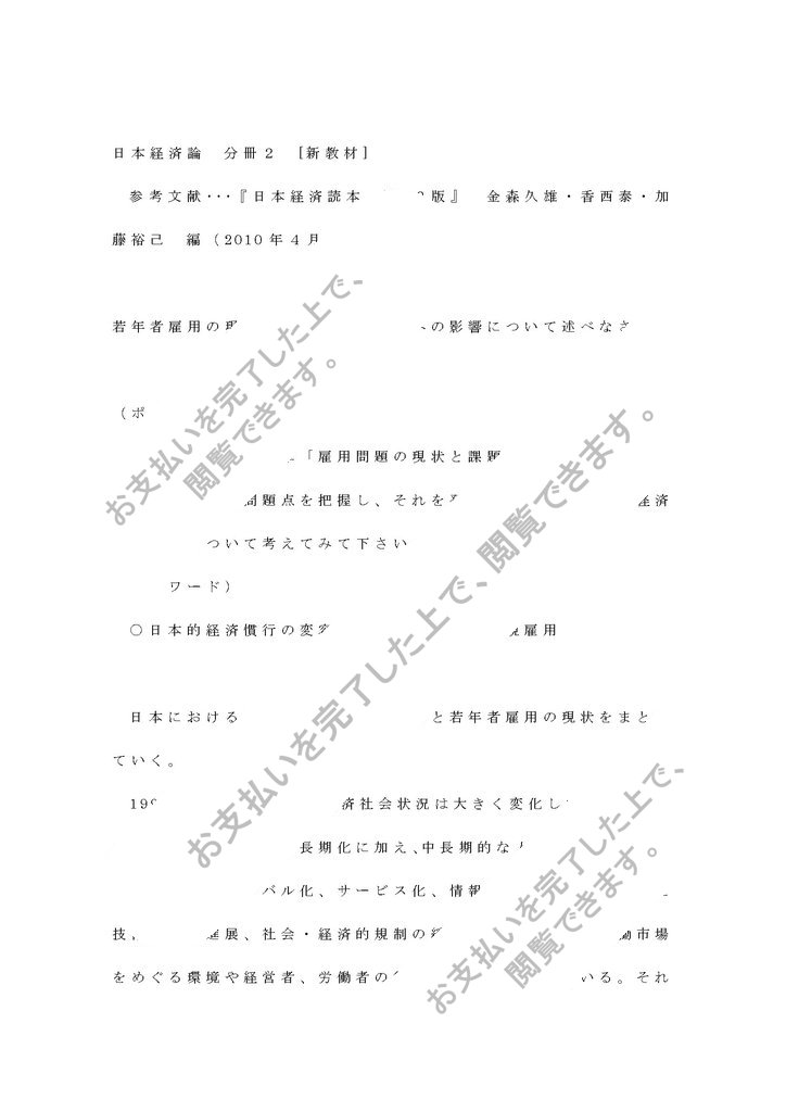 新テキストの第7章「雇用問題の現状と課題」を精読して、若年者雇用の現状と問題点を把握し、それを発展させて今後の日本経済への影響について考えてみて下さい。