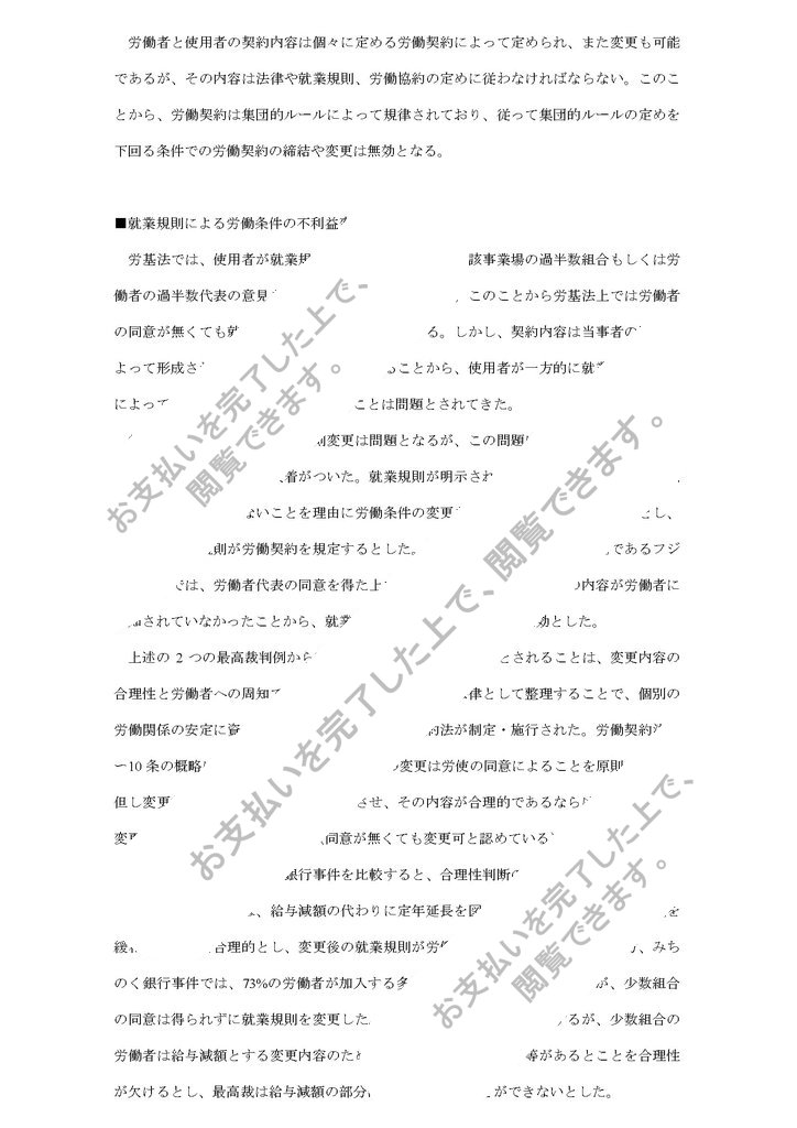 就業規則と労働協約をふまえながら、労働条件の不利益変更について説明しております。また、最高裁の労使問題についても取り上げております。