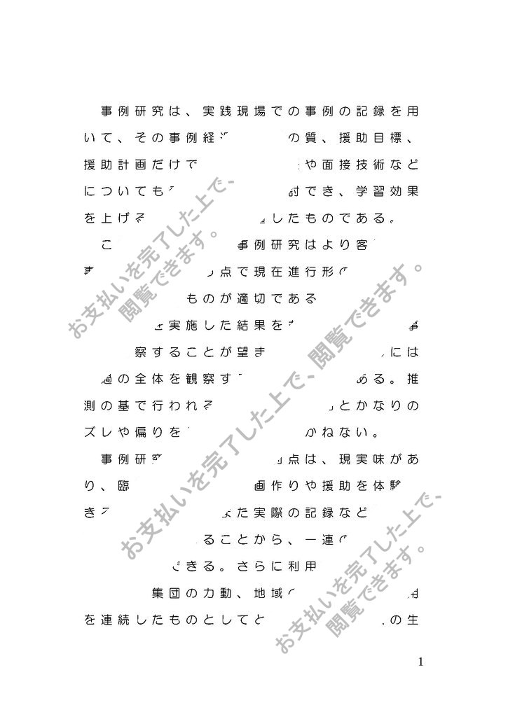 事例研究は、実践現場での事例の記録を用いて、その事例経過、問題の質、援助目標、援助計画だけでなく援助方法や面接技術などについても受講生と共に検討でき、学習効果を上げるうえでとても適したものである。