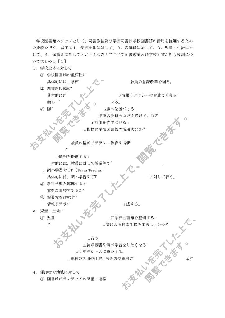 して、4.保護者に対してという4つの面について司書教諭及び学校司書が担う役割につ