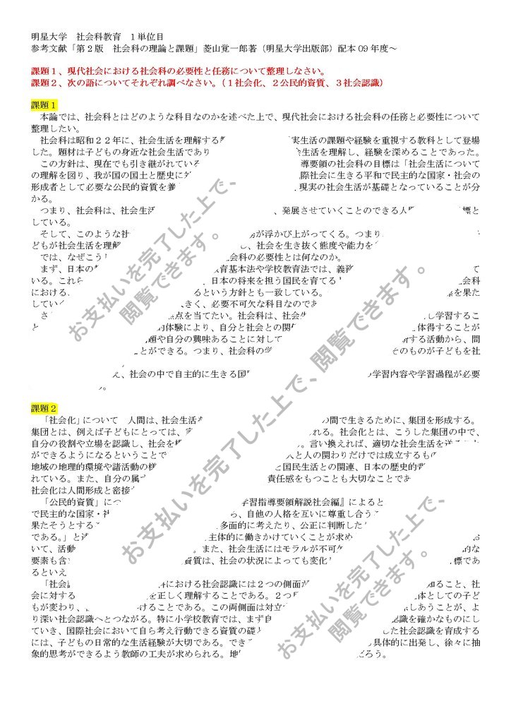 課題1、現代社会における社会科の必要性と任務について整理しなさい。