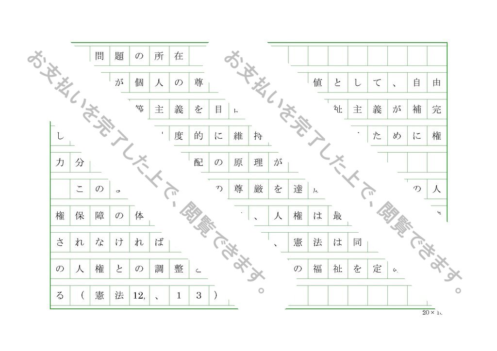 24年度日大通信教育学部の合格レポートです。科目は憲法。分冊1です。講評では、要点を押さえたリポートとして評価します。と記載され合格。「個人の自由及び権利に対する制約について論じ、所感んをのべよ」
