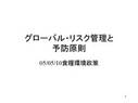 グローバル・リスク管理と 予防原則 05/05/10食糧環境政策 本日の発表内容 1.予防原則・慣習的定義 2.予防原則・ 国際協定での使用例 3. ... 国際協定における使用