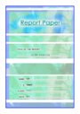青と緑が基調のグラフィカルなレポート表紙。 テキストボックスもキチンと配置してありますので、打ちこんでから印刷もできます。